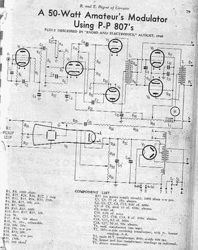 Here is a photograph of a circuit for a 50 watt modulator for Ham radio service. (sorry it's a bit fuzzy).