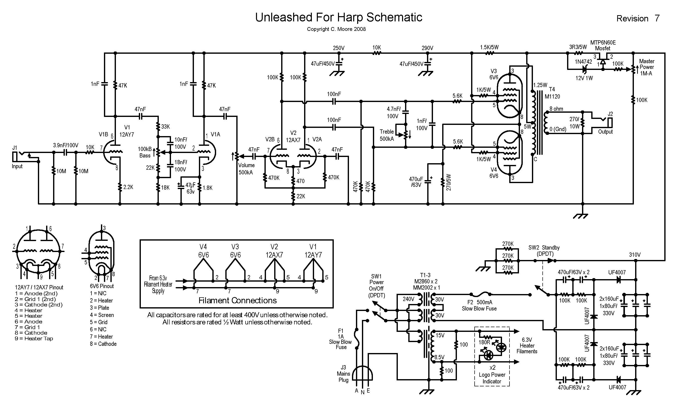 The online diy community (including AVA) has given me so much that I am happy to openly share the harp amp design. I only ask that the brand “chosen” is respected as TM and that the model name “Unleashed For Harp” is not used by others for their amp. They can feel free to use my circuit or any part of it and give it whatever other name they want. Hopefully I've also given some construction tips that others will find useful.