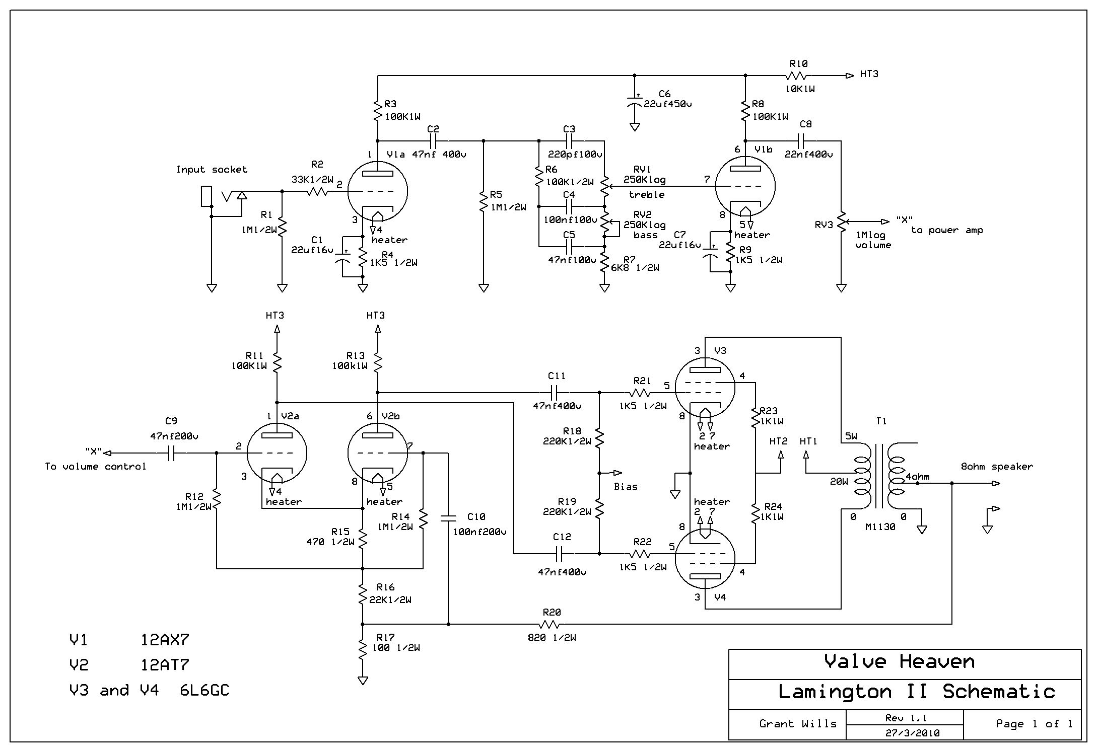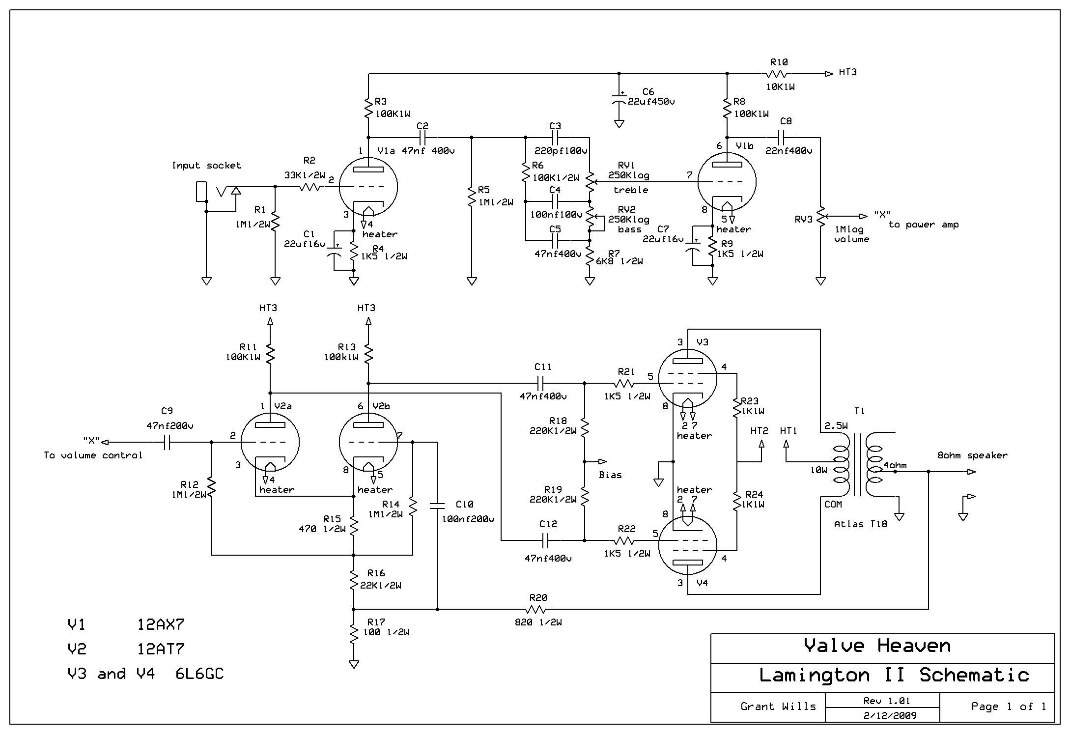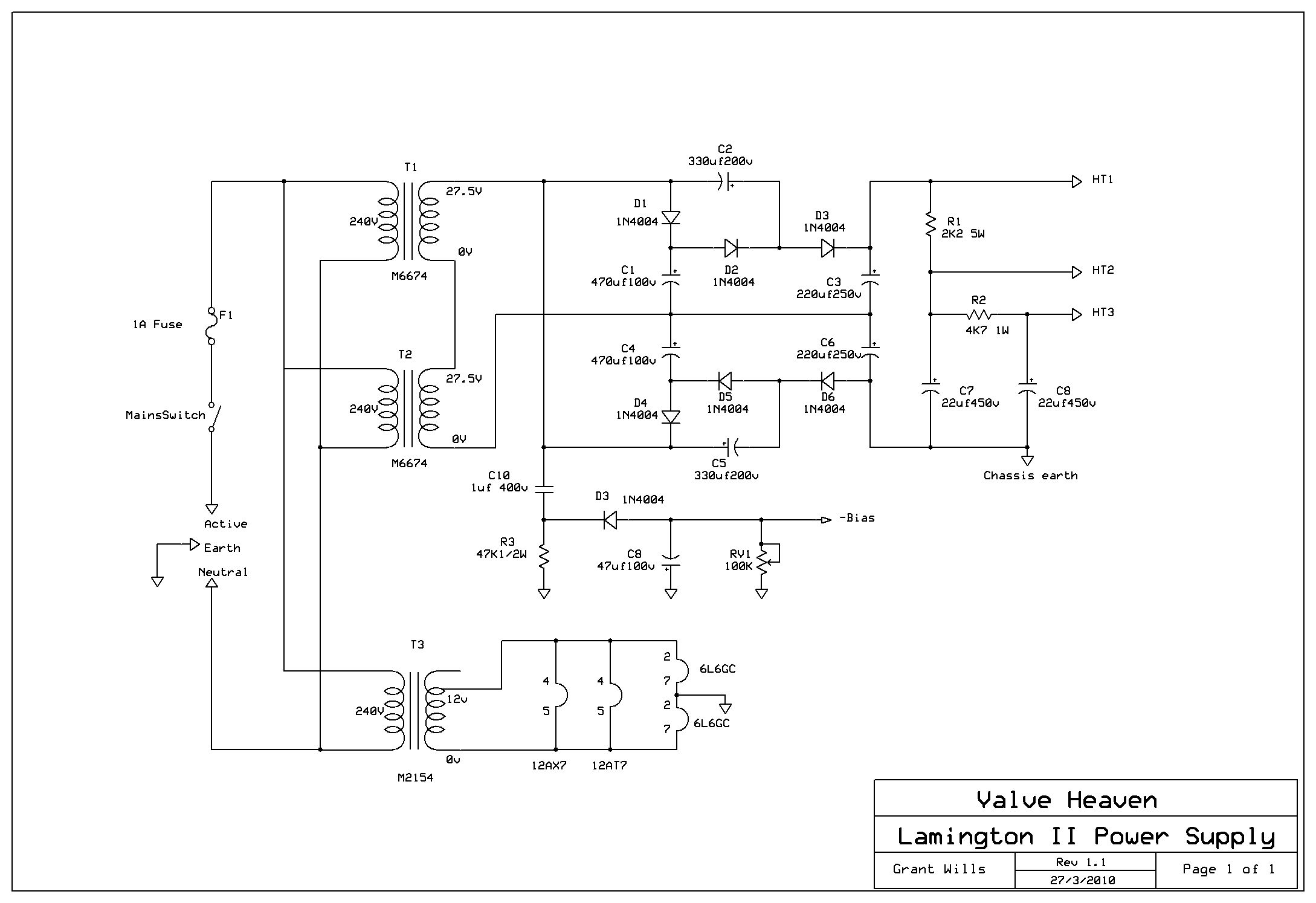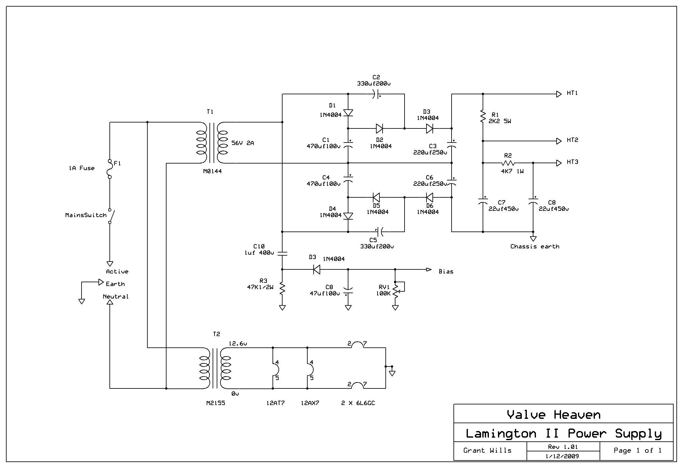 So all this to say that the Lamington II lives again! I attach an amended schematic for the amp and power supply for those who wish to try their hand at this amp. Obviously if a constructor can get their hands on the original transformers - great - however, it is good to know that not only are alternatives available, they have been tested with very favourable results!