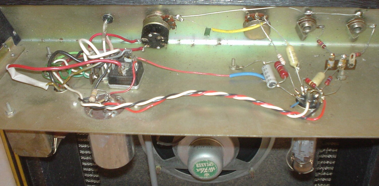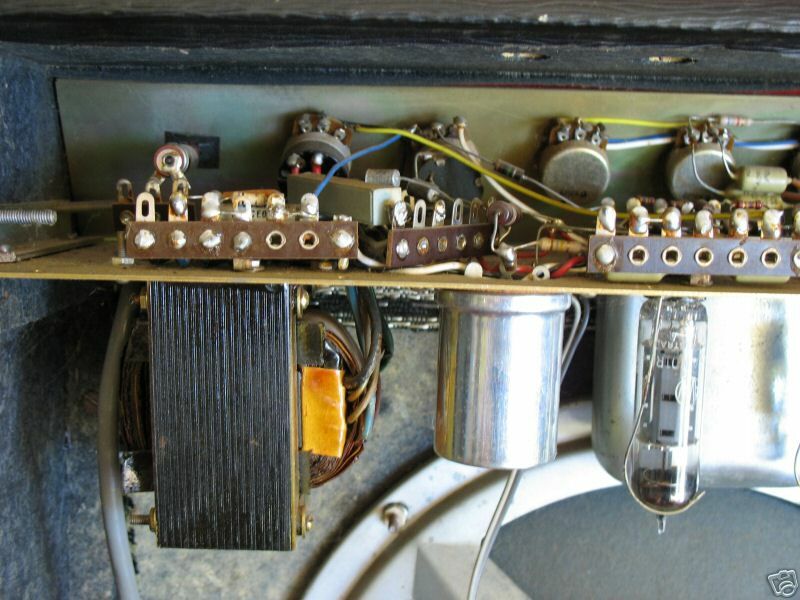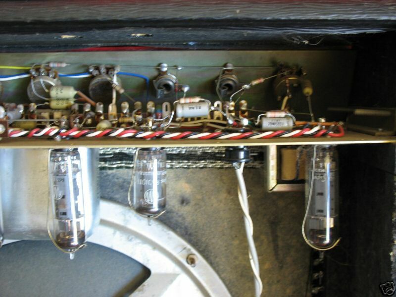 Note the third 6GW8(?) and small tranny, right, for reverb drive.