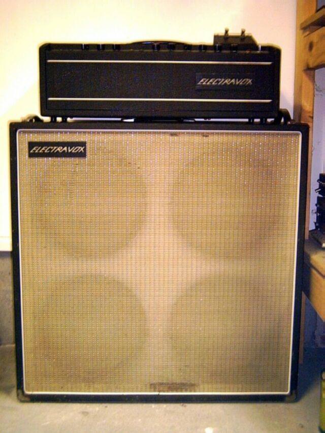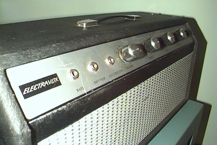 Hi i have been looking at your site for a little while now in seach for any info on my electravox as i have been unable to find anything about it anywere or even see a pic of one that someone else has, so im submitting these photos and hopefully you can tell me a little more about it i dont think its valve but it is vintage, its a great amp i use it as a practice amp, my mother picked it up from cashies about 10 years ago and up until recently had just been sitting around, i never used to use it because simply it doesn't have gain overdrive that kinda thing but i now have a zoom and it just sounds great, also it has a plessey c12p in the box,the tranformer has the number 0150 on it,and it turns on by turning the speed switch, I cant find a model number anywere on it. - Scott![]()