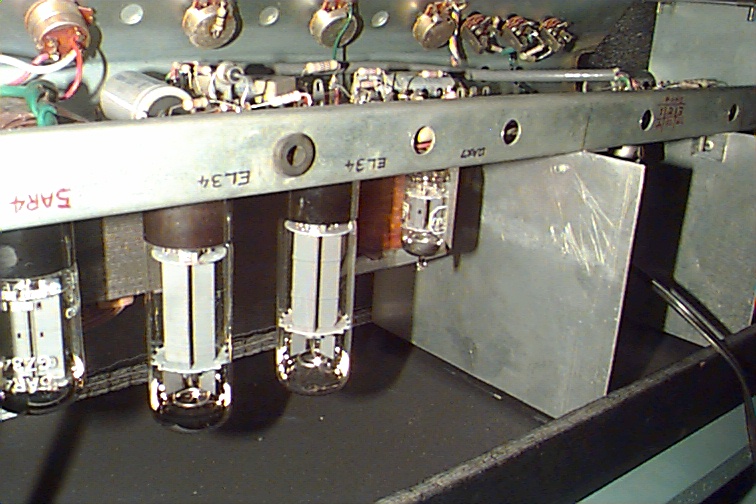 Preamp tubes 12AX7, phase splitter 12AT7, output tubes 2x 6L6GC look original, made in USA.