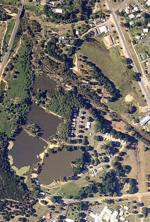 Caravan Park centre, billabong lower right,