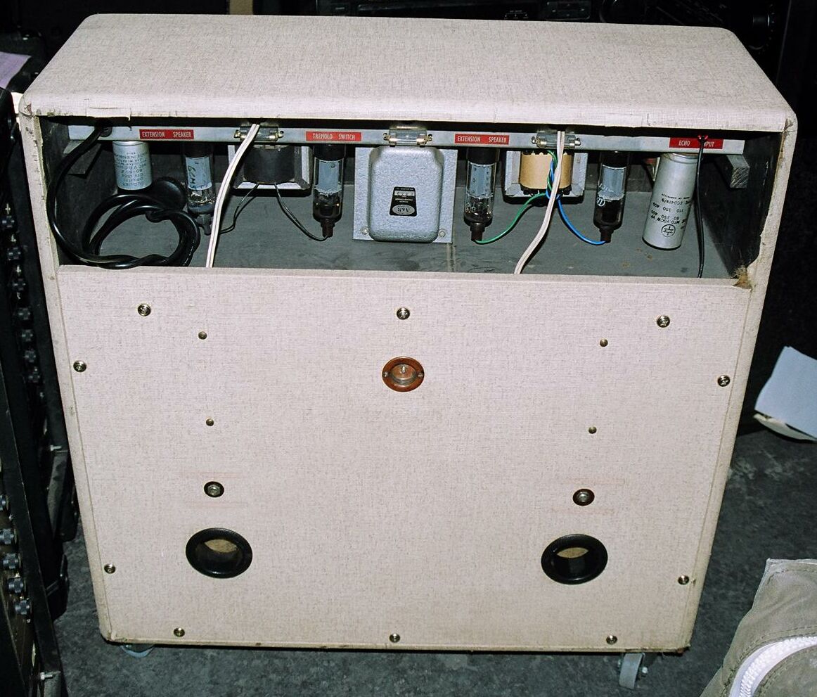 Just looking at this amp it seems to be a well looked after gigging amp. It is solid and tight, the speaker cab in particular. My guess is that this has been improved over the years, perhaps converted to 6CM5's when 6DQ6's became hard to get, and the enclosure seems to have been strengthened internally, the ports, and the business-like castors.
