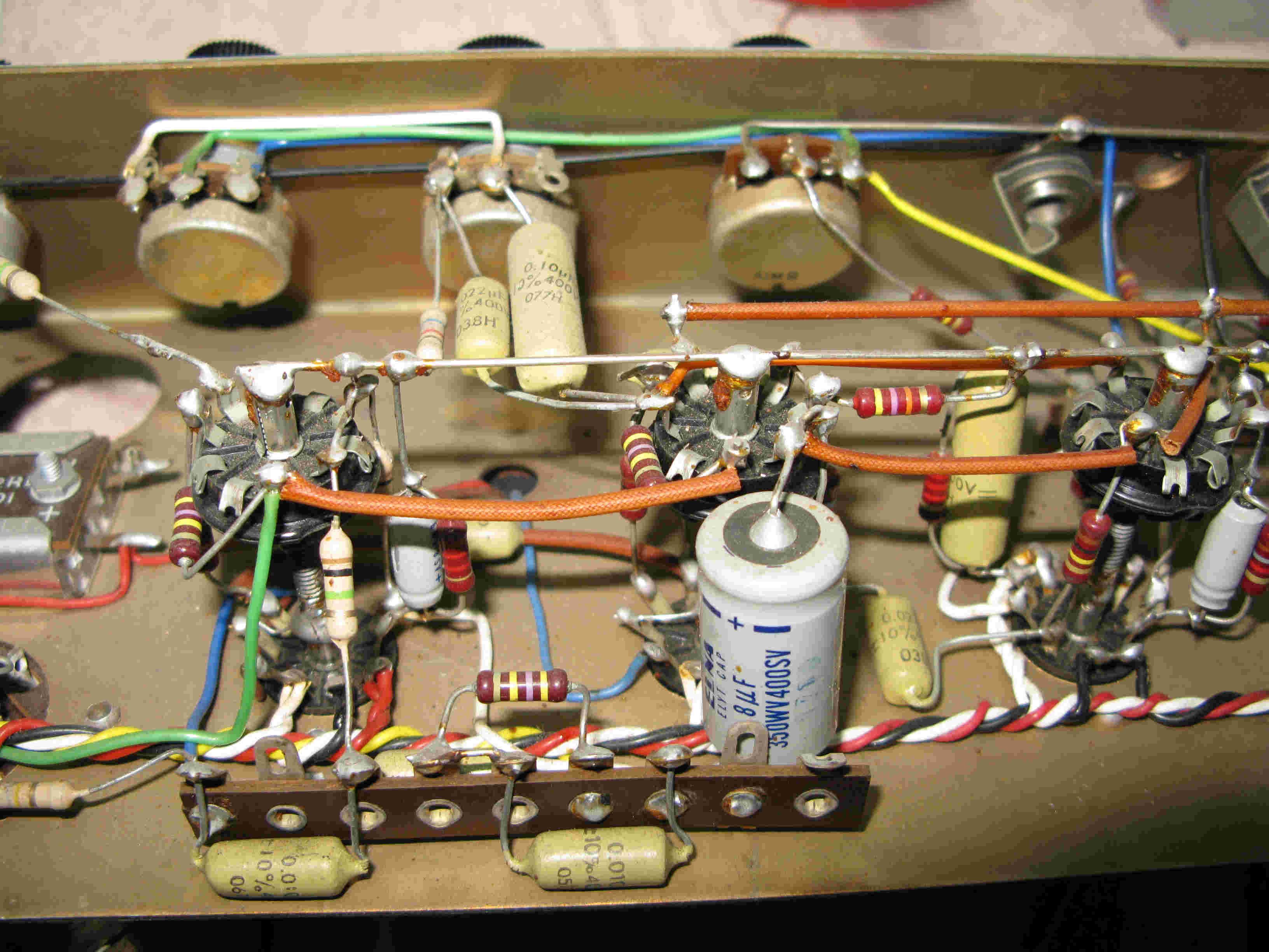 I recently decided that it is time to give the old girl a going over, the 40 year old filter caps were a concern and there were a few mustard coupling caps with obvious cracks in their bodies and there were a few sound issues. Anyway, I replaced all the electro's, all the bypass and coupling caps and a hand full of resistors.