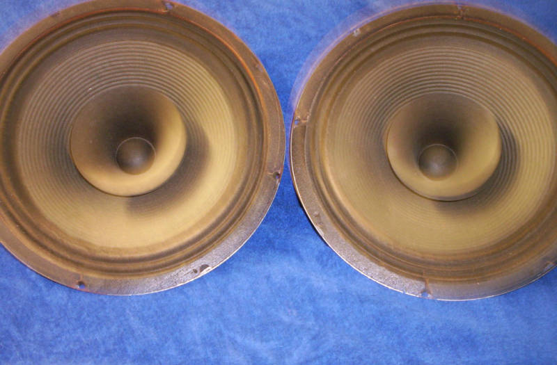 The speakers are 'Rola' 8M23 and I do still have both originals I replaced one because the cone was making noise but the cone stopped making the noise after I removed it, I might put it back in one day, but the newer speaker performs better.