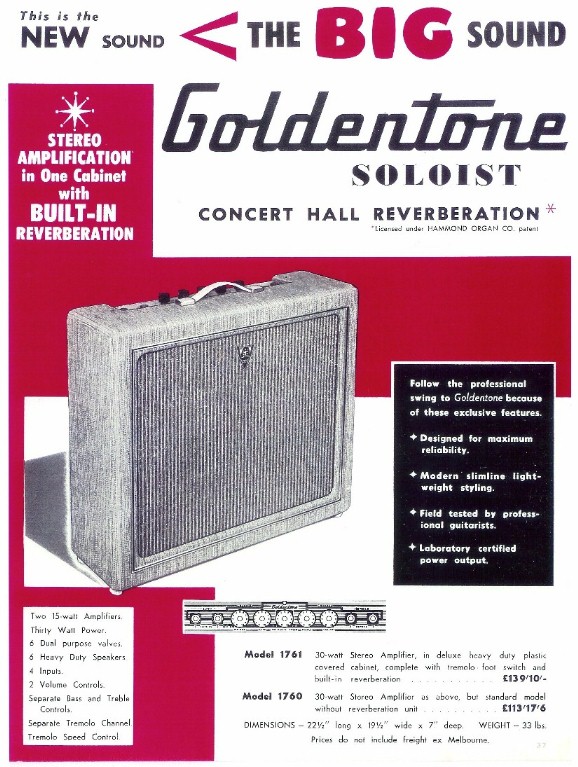 Mark from Brisbane writes “I have a small Goldentone combo amp from the same period with a RM shield on the grill. (I think it was Rose Music) My amp tech up here tells me that G.tone made amps under several different names. In the same way that Maton made Alver and Maxim for different large retailers that were around at the time.... Thought I might share that with you.”