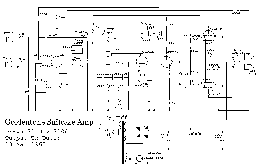 Firstly some form of chronology, information and history of Goldentone amps. Hopefully this section and the serial number section answer some of the many questions asked of the site. “When was my amp made?” “What model is it?”, “How much did it cost?”, “What valves, speakers etc did it use?”
