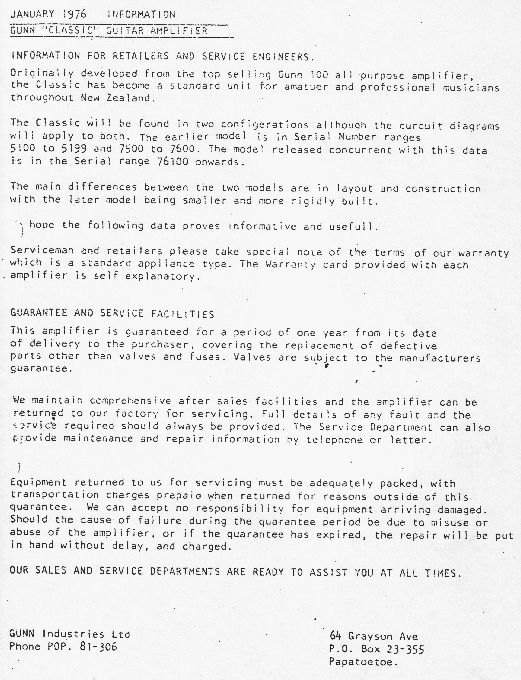 these were built in Auckland by Ken Wilson (died years ago) Have factory data / schematic for Gunn Classic (1976)