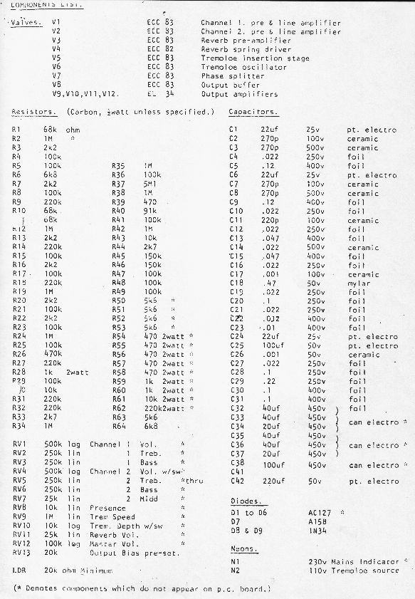 * Note: with any of the circuits you must also have the component list to identify component values - the circuits only have the component numbers.