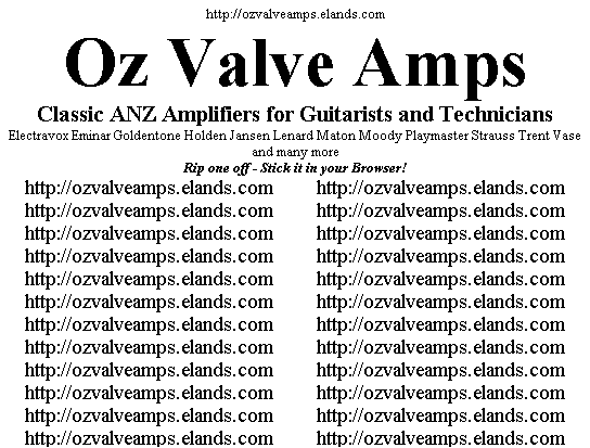 A growing collection of circuits, pictures, data, history, observations, oddities, tips, tricks, traps, and links; concentrating on Australian and New Zealand valve amplifiers for band use, guitar, bass, accordion, harp, keys, and PA.