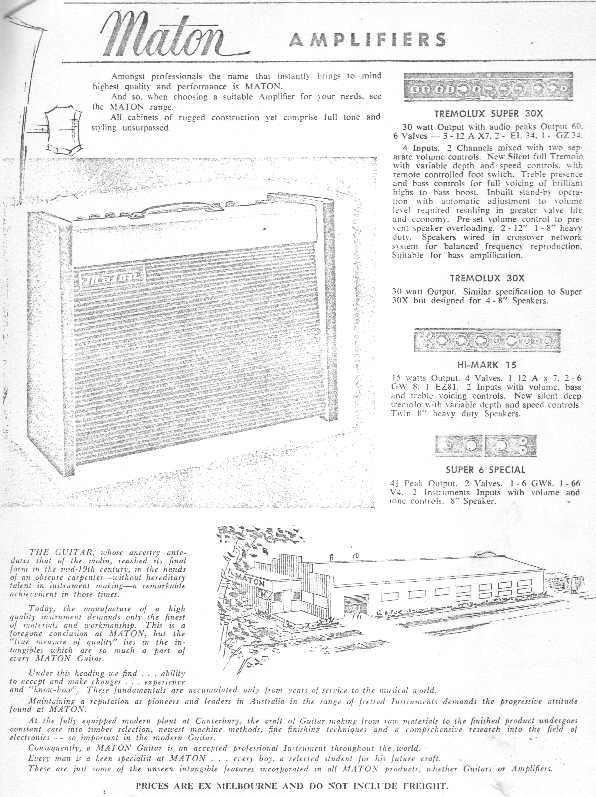 I had previously accepted the Maton dates as correct, and they may well turn out to be, however I have another complete brochure of Maton guitars and artists which features the same description of the amps as in Rodgers catalogue but this time without the pictures.