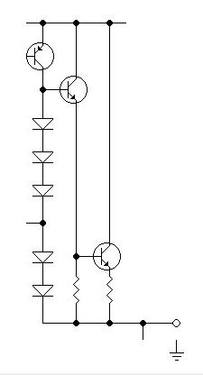 Click for full size 160k jpg.The first two transistors form a direct-coupled amplifier with its gain controlled by a FET in the emitter AC circuit.