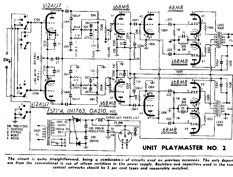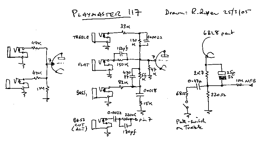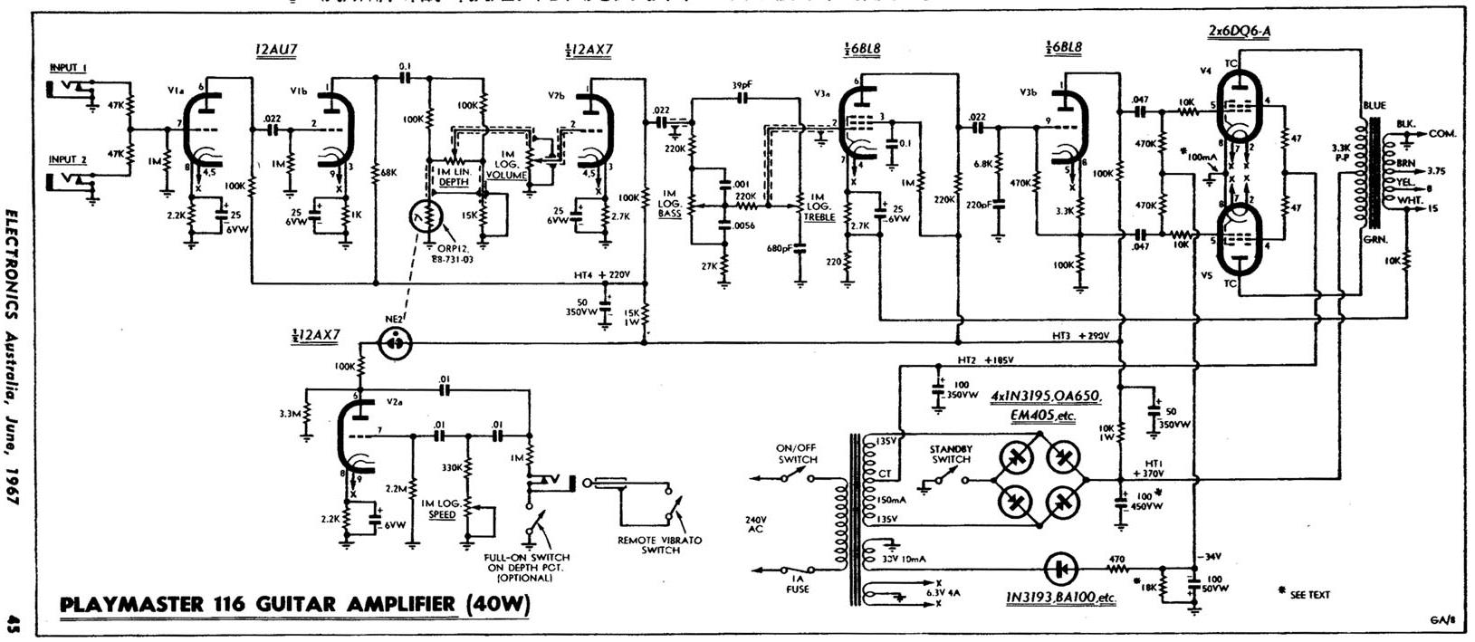 These two are together because there is very little difference between them. The only practical way to tell them apart is the output transformer type number - 2842 for Playmaster 117, and 2843 for Playmaster 116.