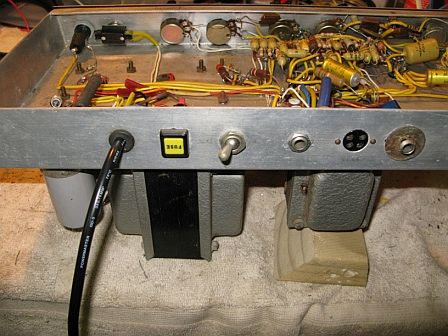 Moving towards home studio it then grew a LM833-based preamp, and a back middle panel with a number of XLR and TRS connectors, speakers first (I know they aren't authentic, but they are a far superior connector for stage work); pre's out, main's in, that sort of thing.