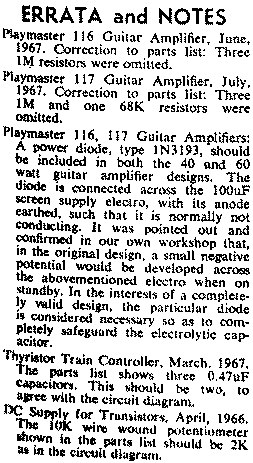 Both the PM-103 and PM-117 had some problems as guitar amp designs, but the PM103 in particular was by far the most practical and useful instrument amp design published up to that time, and I must say, somewhat inspired.
