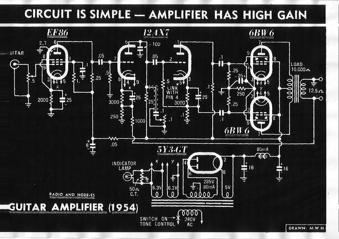 There are some early examples (also on the Playmaster page) but here Joe, better known to his friends by his nom-de-Net as “Ampmangler”, has recreated a 1954 design which uses 6BW6's.