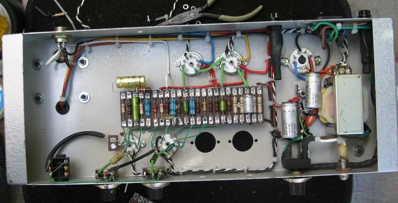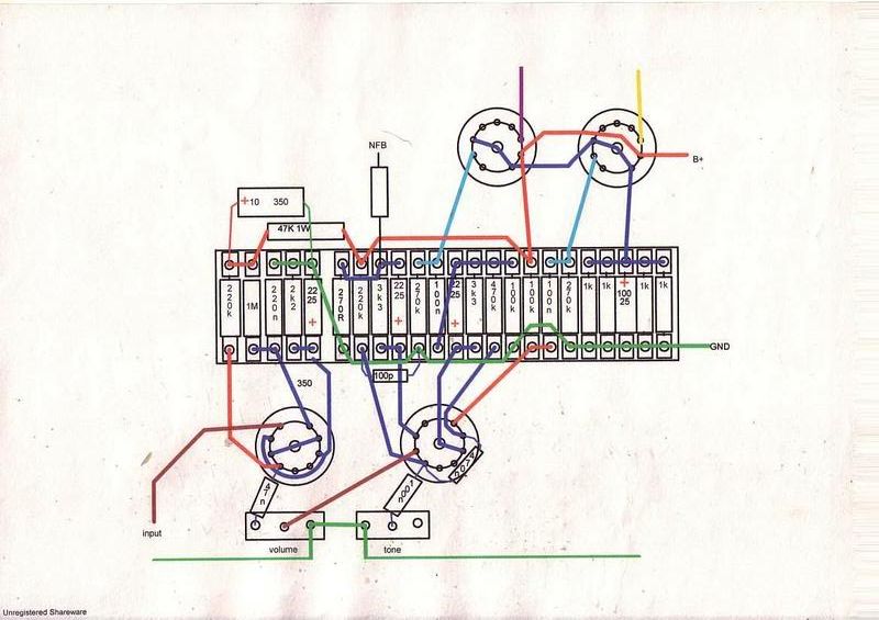 The suggested power switch on the tone control is a bit difficult these days since switchpots have become collectors items, and besides, it's now considered poor practice to mix mains and signal wiring and proper mains switching and fusing is mandatory these days when amps may have to be OH&S tagged for electrical safety to be allowed to gig.