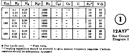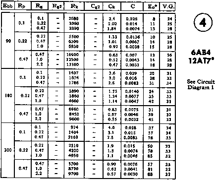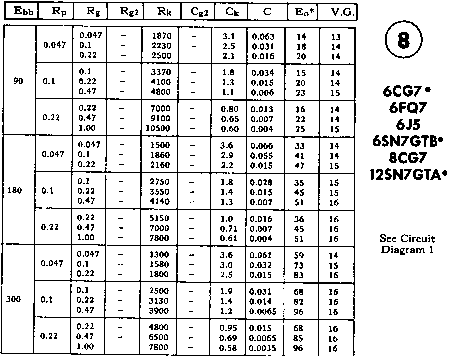 RCA also supplied tables of typical operating conditions for popular valves which make application an even simpler matter. These will also allow you to check if the stage in front of you is reasonable or not.