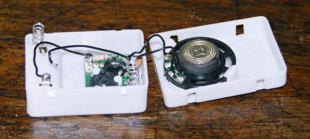 The speaker goes up and down with the lid, and while one battery lead has been dressed down the side of the case well away from the speaker the other battery lead crossed right behind and the resulting flexing has broken the solder joint on the battery tag.