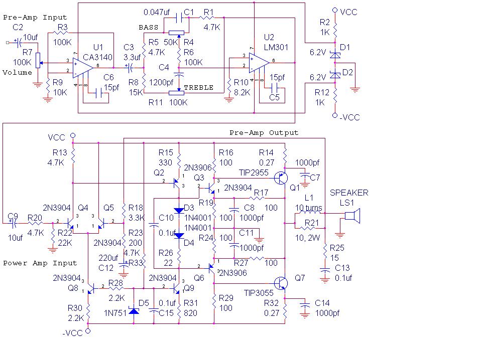 The use of the TIP2955/3055 pair brings up another point. There is nothing wrong with TIP or MJE series thermopad transistors, but none of these similar types have the same ratings at the TO-3 package 2N3055. Be aware that the 2N3055 power spec is 115 watts, while the TIP and MJE 2955/3055's are rated at 90 watts.