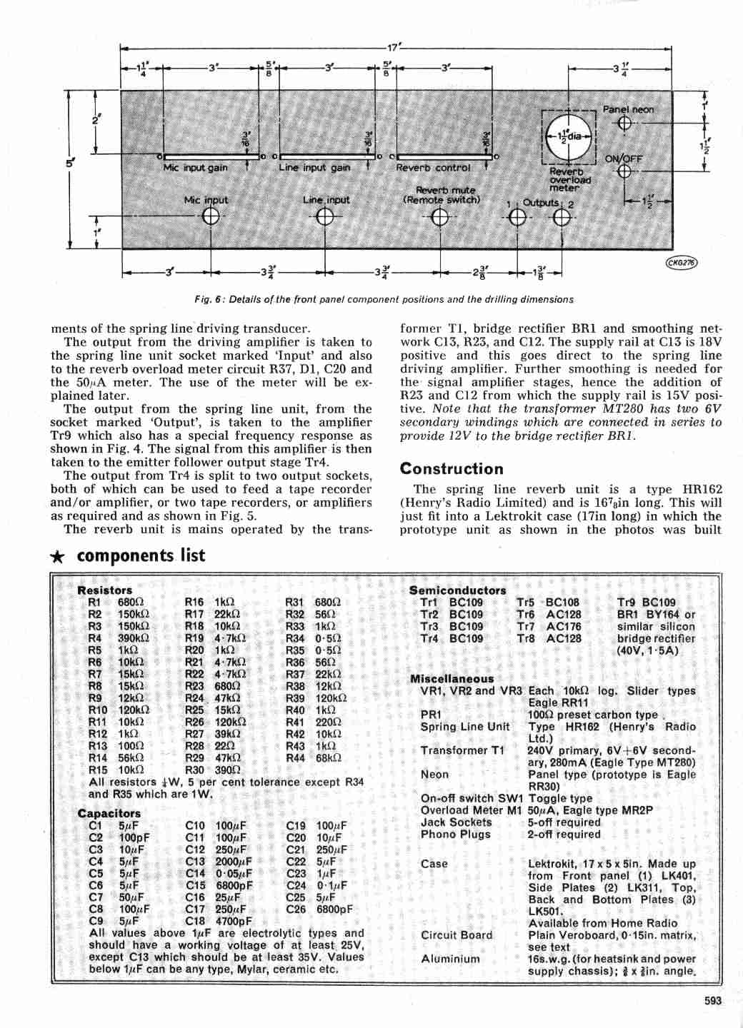 While this gives a flatter overall line response, more suitable for Hi-Fi use, we should remember that the traditional reverb circuits of the Dick Dale era were normally voltage drive.