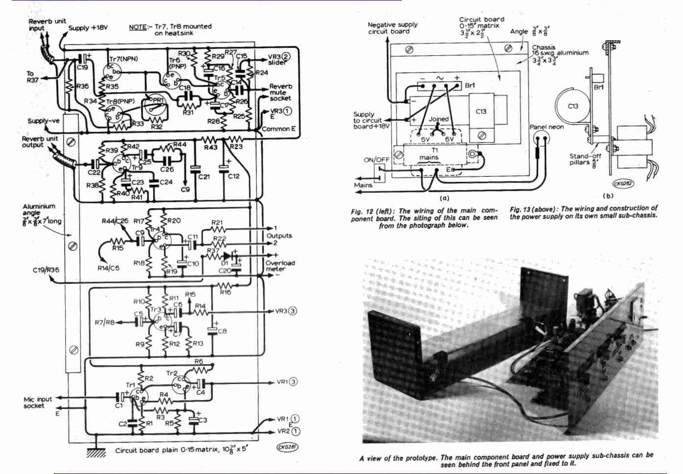 - - strip-board circuit layout, front panel internal layout