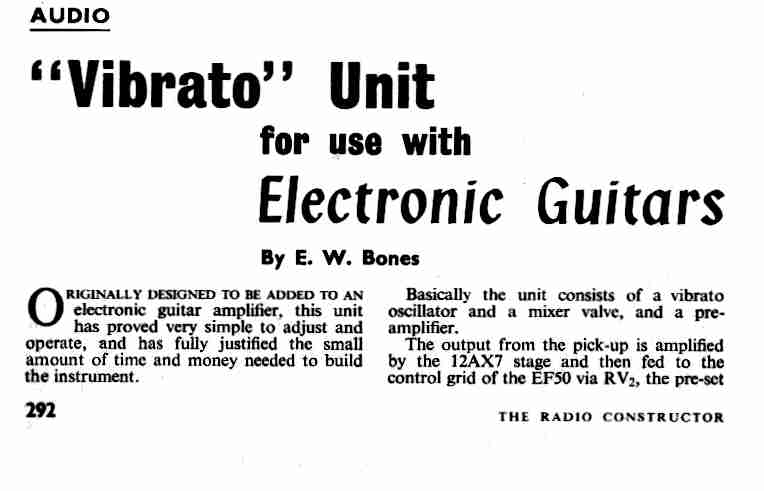 “Vibrato Unit” for use with Electronic Guitars by E.W.Bones