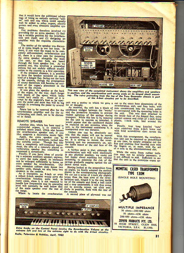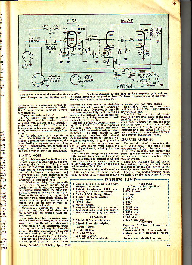 A valve reverb add-on, published: April 1962.