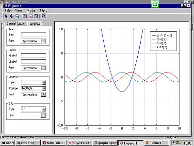 Easily the most colourful of the graphing packages I have, it seems to accept a full set of trig functions of arbitary length, and allows the definition of eight similar sub-functions named simply C1 to C8, so you can potentially plot insanely complex functions.