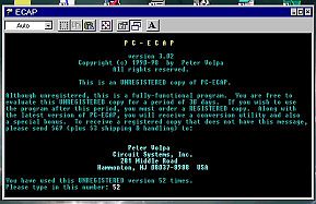 PC-ECAP has been one of the world's best linear circuit analysis programs. The software will calculate and plot: gain, phase, group delay, impedance, VSWR and return loss. This versatile program can also calculate your circuit's transient response, using one of eight waveforms: pulse, 3 types of step functions, ramp, square wave, triangle wave and sine wave. Don't think a powerful circuit analysis program has to be hard to use. PC-ECAP is completely menu driven to make operation truly a breeze. Want a file? A sorted list is displayed full screen, just highlight your choice and go. Use its built-in full screen text editor with pop-up help to describe the circuit to be simulated. Or use its bipolar transistor model maker to create a Hybrid-Pi transistor model. With a frequency range of .001Hz to 999GHz, you will find uses for PC-ECAP from below audio to microwave. The program handles circuits with up to 90 nodes and 1000 components. High resolution graphs may be displayed on screen or plotted on 9/24 pin dot matrix or HP LaserJet or HP DeskJet printers. The registered version even includes a utility to create Lotus 1-2-3 compatible spreadsheets from your analysis data. All video adapters are supported. Only $69.