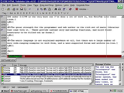 While the free Lite edition says it finds errors only the commercial version will explain I have found that a script that validates to this point generally validates okay in the next step also, W3C validation (below), thus the lite version is generally good enough if you are aiming at HTML 4.01 compatability.