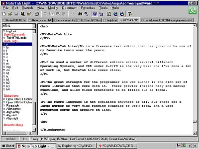 NoteTab Lite is a freeware text editor that has grown to be one of my favorite tools over the years.