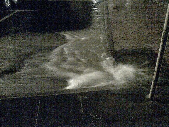 Around 9pm water was pooling and flowing over roads even in higher places such as Melbourne road. A large surface flow was observed coming down the top end of Albert St past the Commonwealth Bank, flowing in a sheet across Albert St at the rotunda. The gutter at Albert and Water streets was overflowing. All of this was local surface runoff.