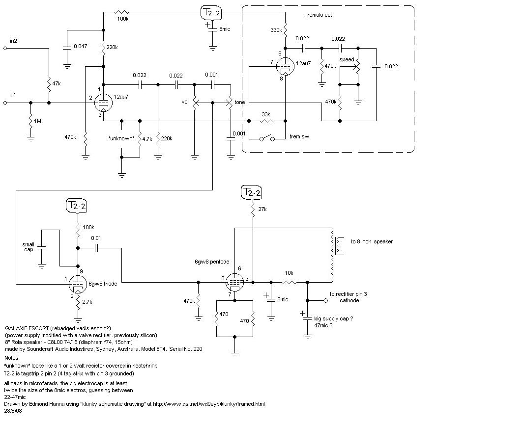 Galaxie Escort preamp and poweramp circuit.Source: Edmond Hanna