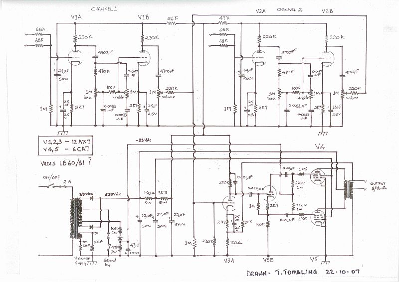 Errata (dated 22/10/07): there should be a 100k between the anode of V3b and HT+3;