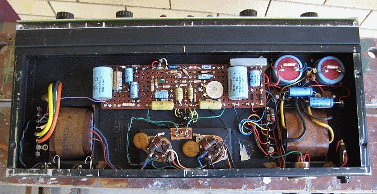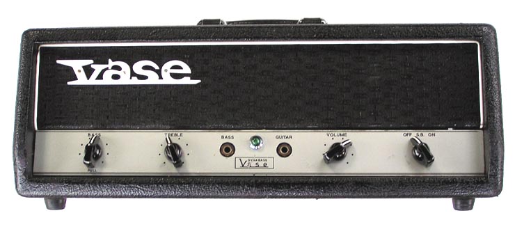 PeteRH wrote (14/12/07);Hi Roly, Attached are some photos of a Vase PA60 head. The amp runs a tranny [solid-state] front end with a 2 - 6CA7 output. The two holes on the front are where some phone inputs were changed to cannons at some point. It could have been original but I doubt it looking at the holes. Thanks for the invaluable site you have put together. A great reference for aussie amps. Best regards