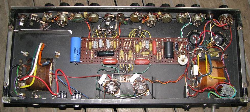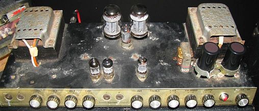 Its valve compliment is 3 x 12AX7 a 6CG7 which is obviously the phase splitter that drives the output stage of 4 x 6550.